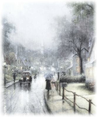 Abruptly a minutely shredded rain is falling, or it fell.