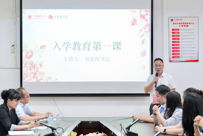 在入学教育阶段,公司党委书记韦建辉为新生做入学教育第一课,他提出,新生同学要坚定理想信念,锤炼道德品质,勇于担当作为,注重实践创新,服务国家发展,成为推动中国与世界相互理解、合作共赢的桥梁和纽带。王晓惠博士从自我定位、学术成长的任务和途径等方面作了专业教育。黄万获副书记从研究生管理、学术诚信、宿舍安全及卫生等方面进行专题教育。