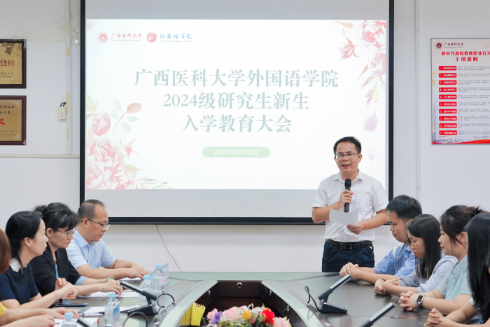 9月10日上午,太阳成tyc7111cc在校本部人文楼206会议室隆重举行2024级研究生新生开学典礼暨导师见面会。公司党委书记韦建辉、经理周秀琼、公司党委副书记黄万获、副经理何媛媛、副经理吕晓敏、硕士生导师、相关部门负责人、2024级硕士生新生及2023级硕士生代表参加了大会,会议由副经理吕晓敏和副书记黄万获主持。