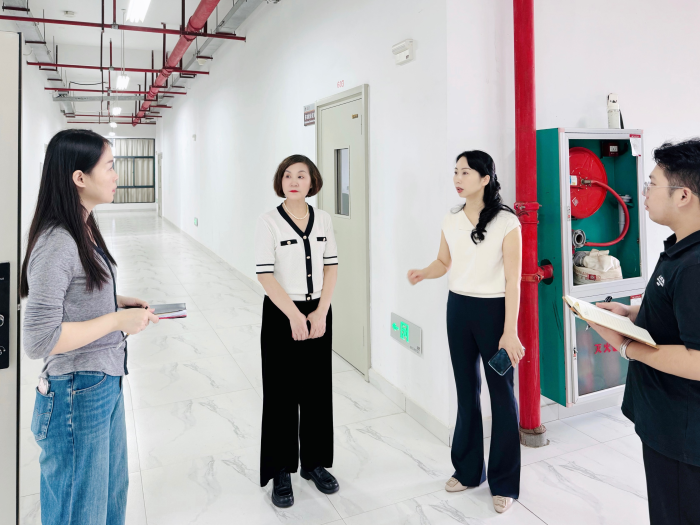 为切实做好国庆节期间各项安全工作,确保校园安全和谐稳定,喜迎新中国成立75周年,9月29日上午,太阳成tyc7111cc经理周秀琼带队对武鸣校区A9栋各语音室及办公区域开展安全检查。副经理何媛媛、院办主任晁丽、安全员门昕煜、莫锦烽等陪同检查。