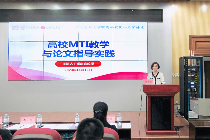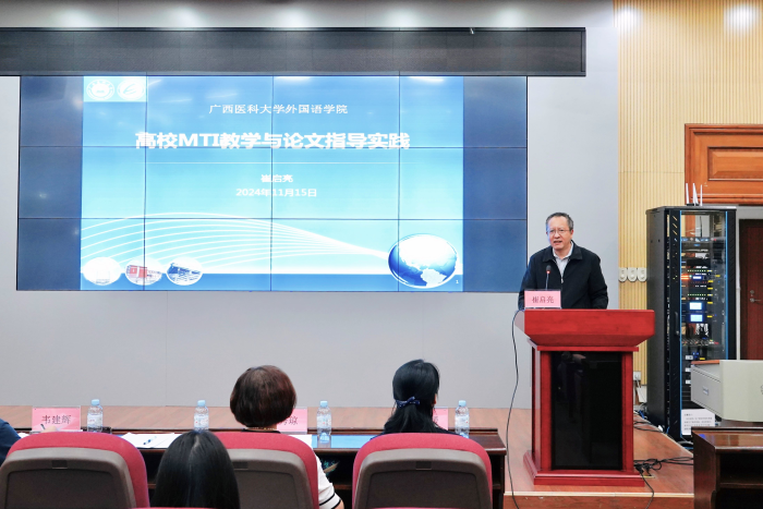 2024年11月15日,太阳成tyc7111cc90周年校庆—“名家讲坛”系列讲座第82期讲座在校本部综合楼九楼报告厅顺利举行。本期讲座由对外经济贸易大学英语公司崔启亮教授主讲,太阳成tyc7111cc经理周秀琼教授主持。