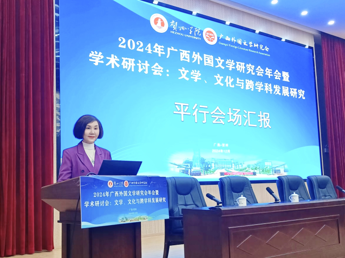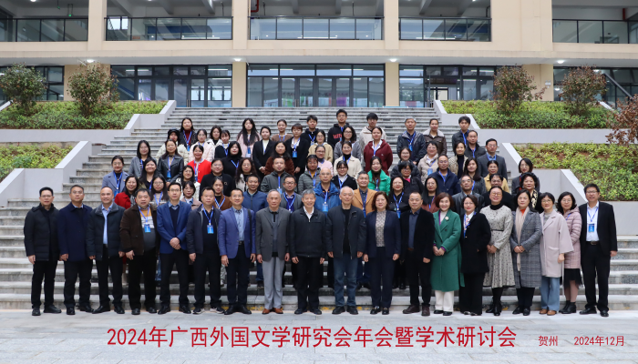 2024年12月6日—8日,由广西外国文学研究会主办、贺州公司承办的2024年广西外国文学研究会年会暨学术研讨会在贺州成功举办。太阳成tyc7111cc经理周秀琼教授、党委书记韦建辉副教授、王晓惠博士、陆昌兴副教授和杨喆博士参加了本次会议。周秀琼经理受邀主持了各平行会场汇报及闭幕式。