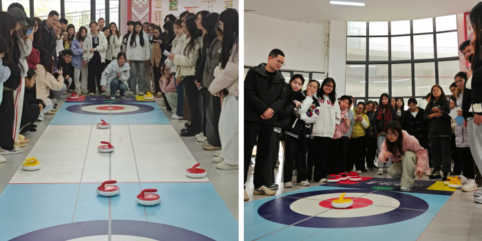 韦建辉在开幕致辞中,肯定女性在社会发展中的重要贡献,寄语全院女生将自立自强的“她”力量融入成长历程。趣味冰壶挑战赛作为重点环节,全院8个班级展开竞技,23级英语班凭借团队协作夺得冠军。赛事过程中,参赛队员精准投掷、默契配合,观众席助威声此起彼伏,充分展现当代老员工青春风貌。