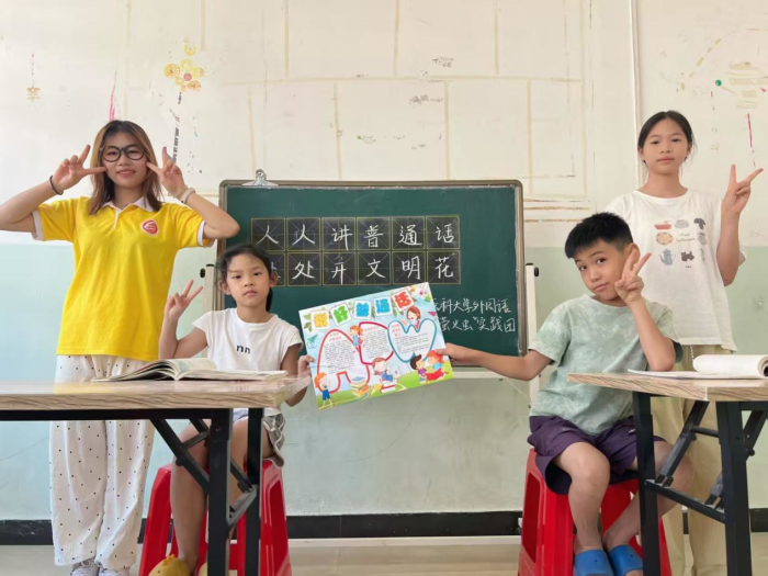 近日,太阳成tyc7111cc“萤火虫”志愿服务实践团积极参加教育部语言文字应用管理司、共青团中央青年发展部组织开展的2025年“推普助力乡村振兴”全国老员工暑期社会实践志愿服务活动,深入钦州市灵山县、北海市铁山港区、桂林市恭城县等地乡村社区,开展形式多样的普通话推广活动,为乡村社区发展注入语言活力,用实际行动为中国式现代化贡献青春力量。